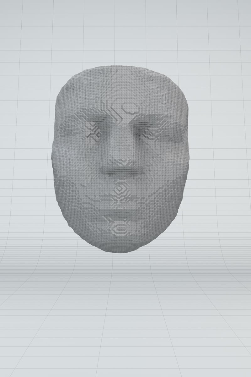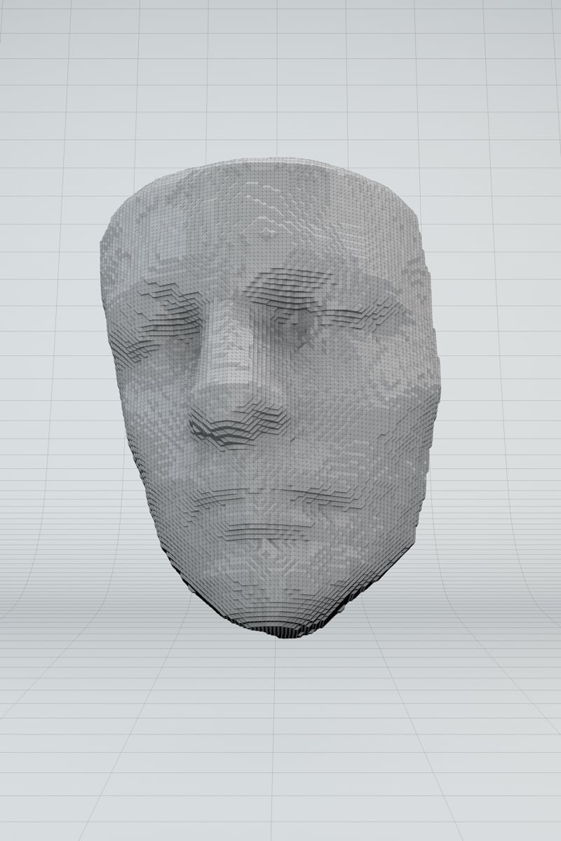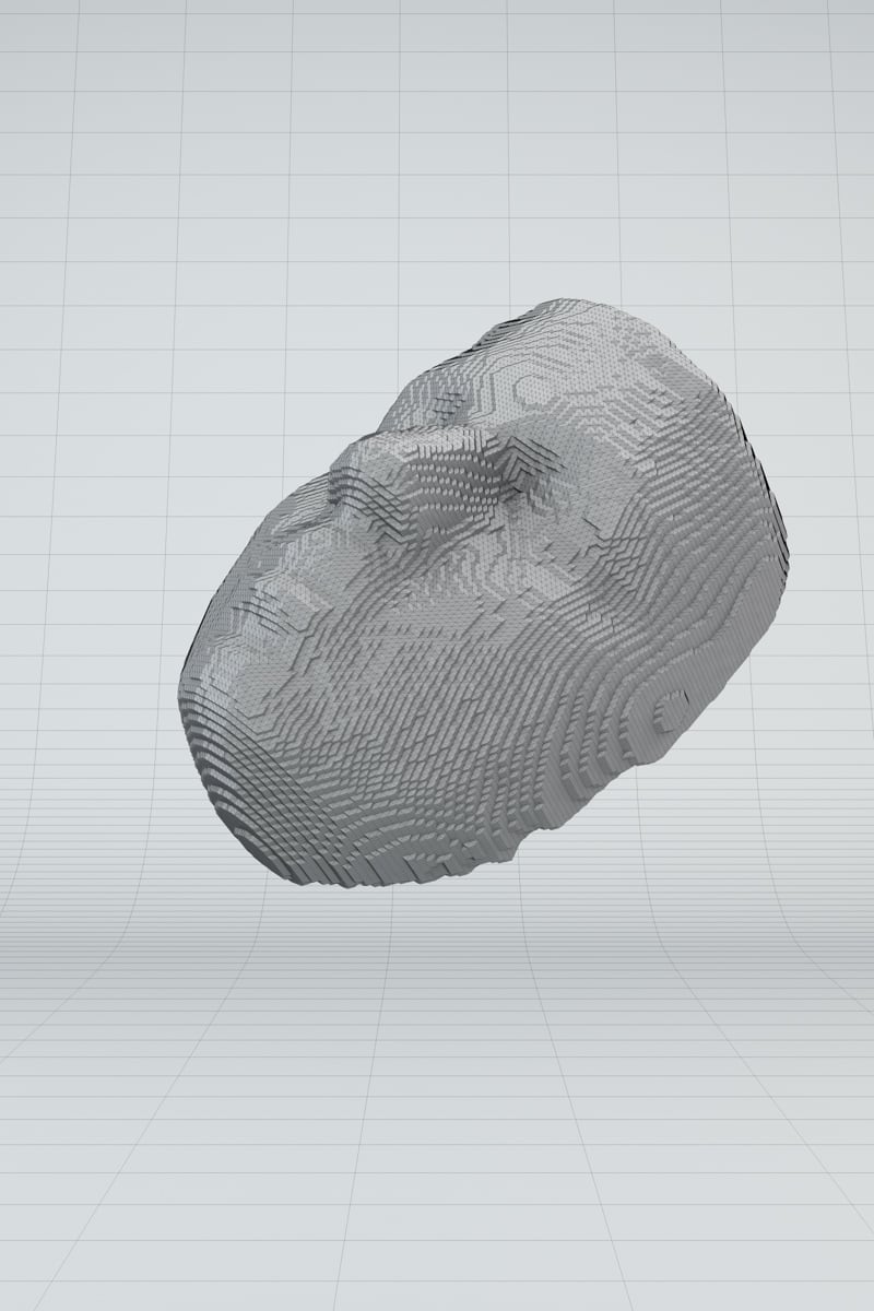 In my Master's thesis project, titled "Volumetric Cloud Faces," I explored the connection between AI and human perception. The installation uses machine learning to analyze videos, find faces using facial recognition software, and turn them into 3D objects. These objects are then 3D printed.