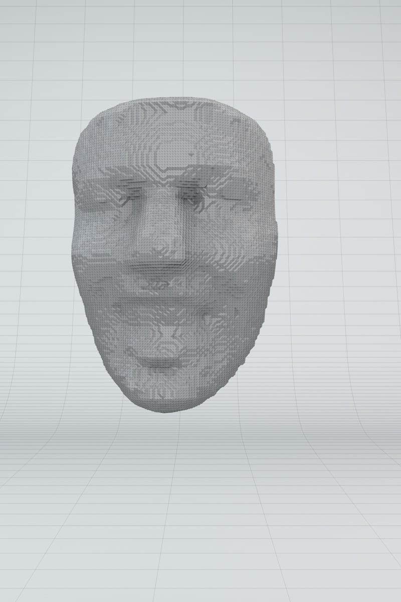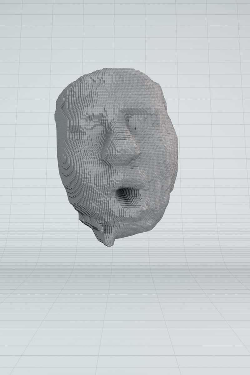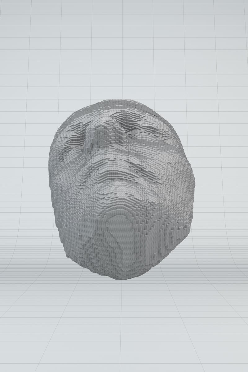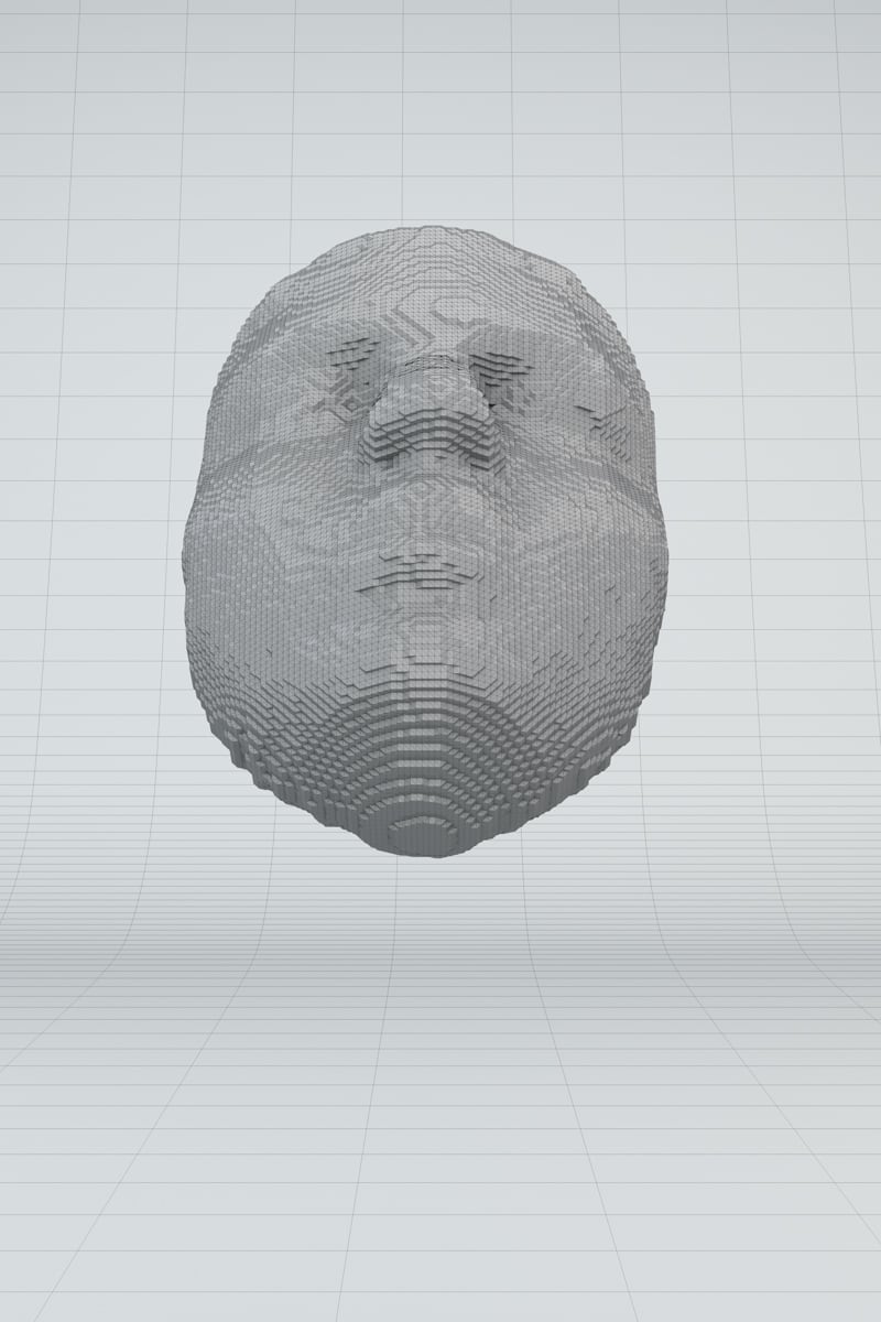 In my Master's thesis project, titled "Volumetric Cloud Faces," I explored the connection between AI and human perception. The installation uses machine learning to analyze videos, find faces using facial recognition software, and turn them into 3D objects. These objects are then 3D printed.