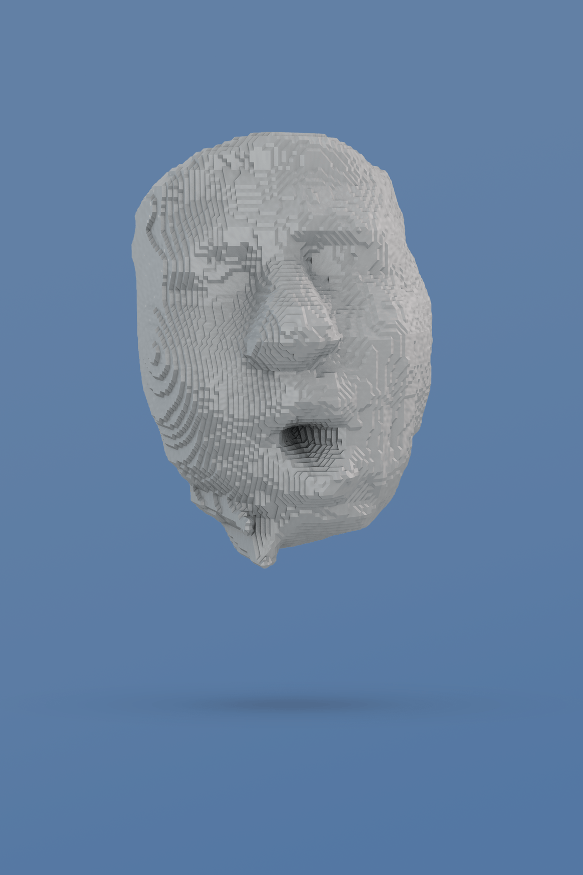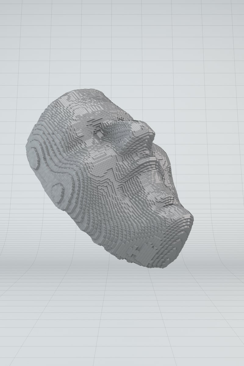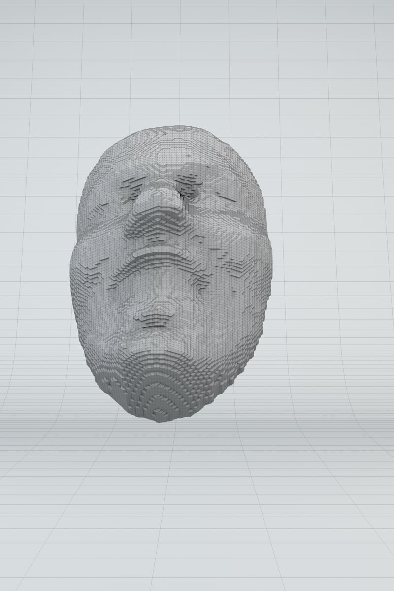 This transformation of found faces into tangible objects invites viewers to question their relationship with digital technology and the ways in which they perceive and interact with media.